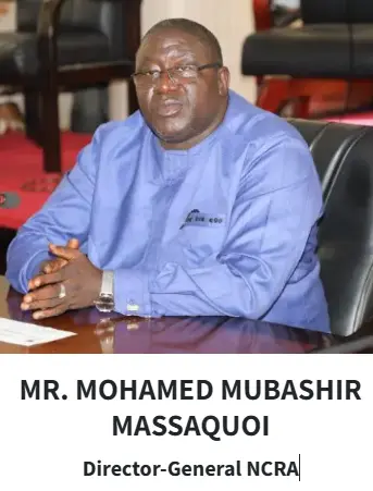 The current Director General of the NCRA is Mr. Mohamed Mubashir MASSAQUOI, appointed by His Excellency, President Dr. Julius Maada BIO, in July 2018. Mr. MASSAQUOI brings over 15 years of professional experience in Administration, Management, Programming, Peacebuilding, and Democratic Governance, having worked with both local and International Organizations, including the United Nations.
